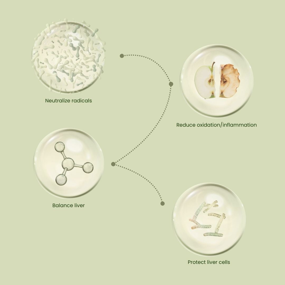 This advanced formula supports liver health from three angles — shielding cells, balancing inflammation, and optimizing detox pathways.