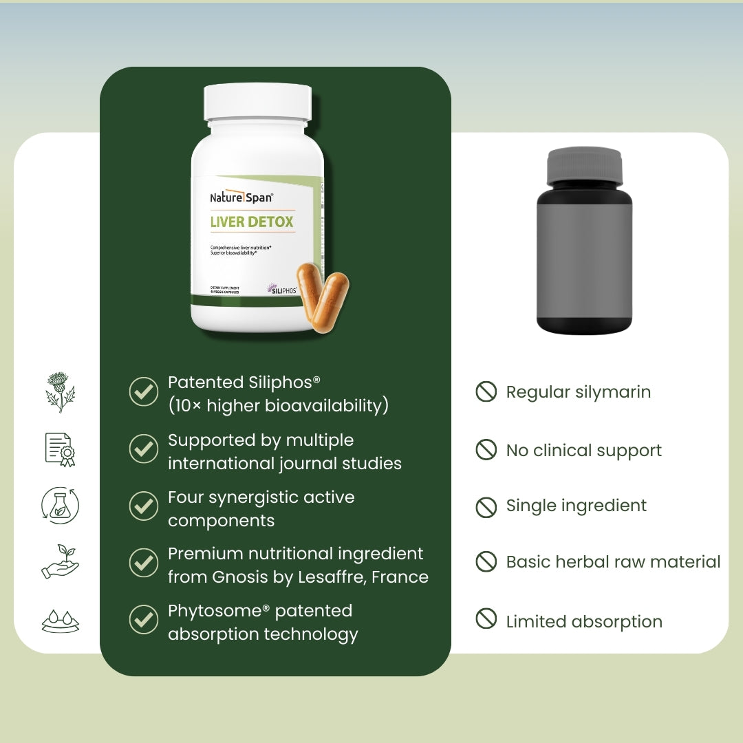 Powered by Phytosome® technology, this advanced formula delivers targeted liver care through detox, anti-inflammatory, and antioxidant pathways — with up to 10x better bioavailability.